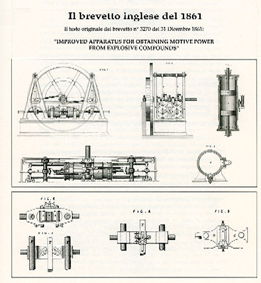 L’esame del brevetto mostra che il testo è simile a quello del brevetto inglese del 31 dicembre 1861 n°3270 dal titolo Improved apparatus for obtaining motive power from esplosive compounds, registrato il 29 aprile 1862.