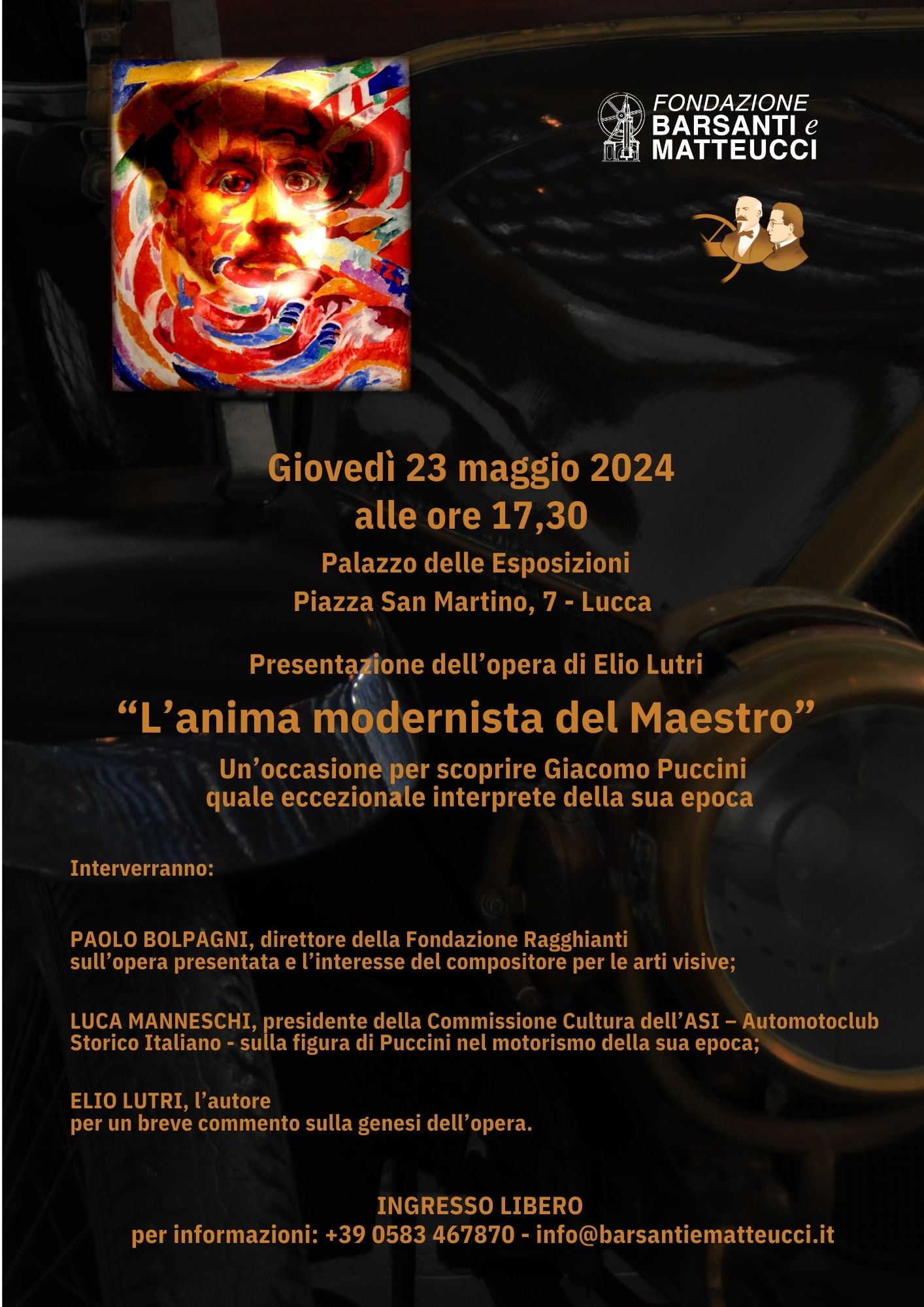 Un'opera di Elio Lutri dedicata a Giacomo Puccini ed alla sua passione per i motori