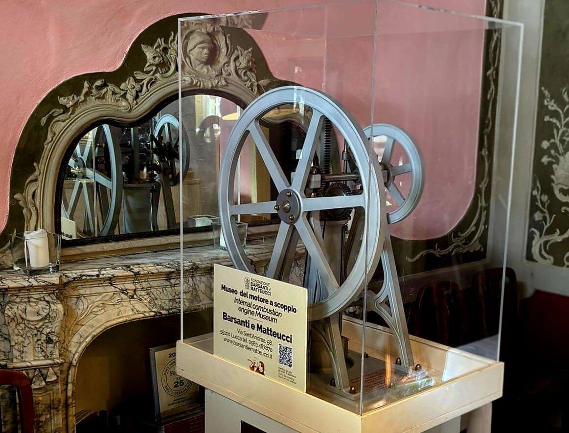 All'interno del locale abbiamo inoltre esposto una riproduzione funzionante di uno dei motori progettati da Barsanti e Matteucci, permettendo ai visitatori e agli avventori del ristorante di osservare da vicino uno dei risultati più significativi dell'ingegno tecnico nato a Lucca e destinato a segnare la storia della tecnologia motoristica.